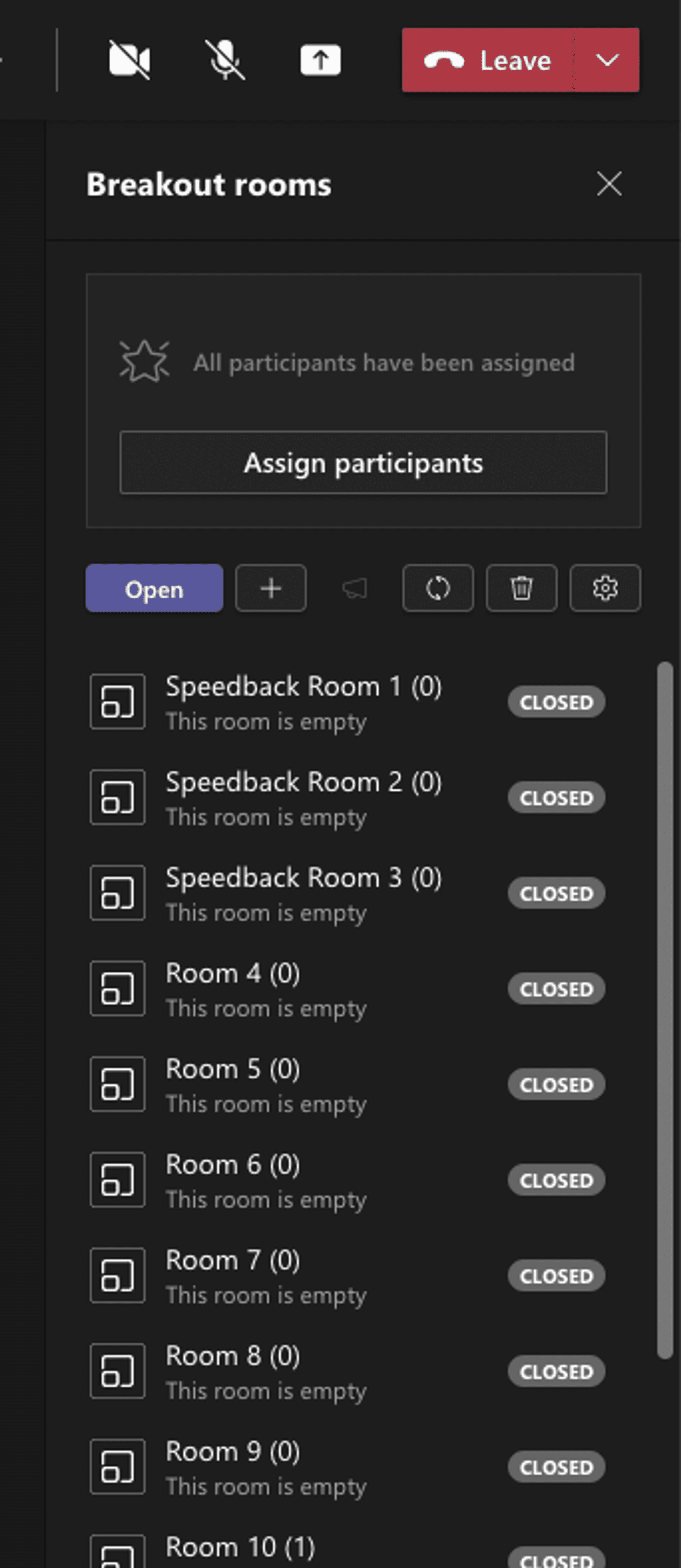 - Agree a suitable duration for each round. I found five minutes too short and 10 minutes quite loose — eight minutes seemed about right. MS Teams has a setting for enforcing this with a countdown timer in each breakout room.